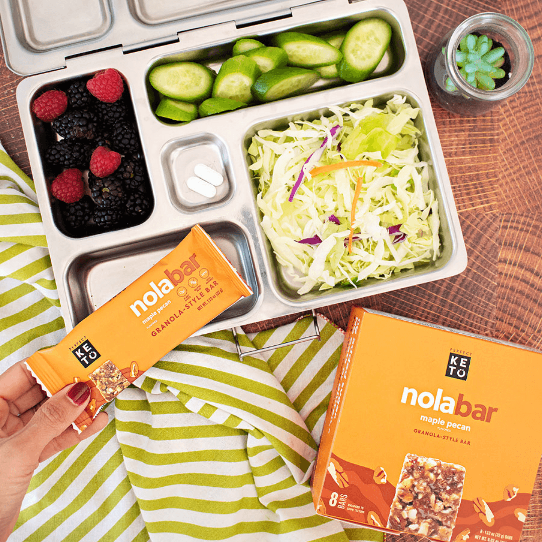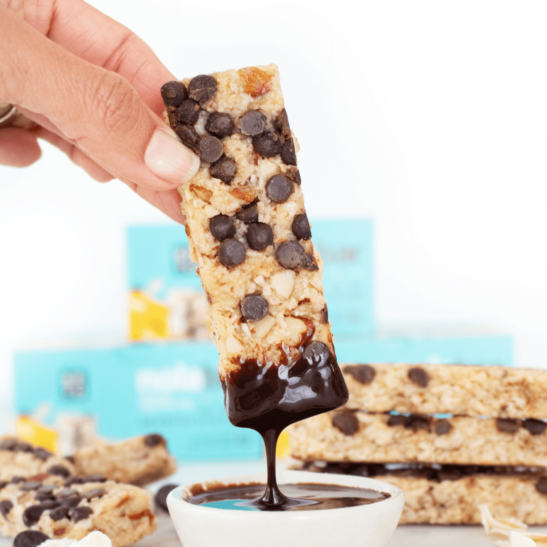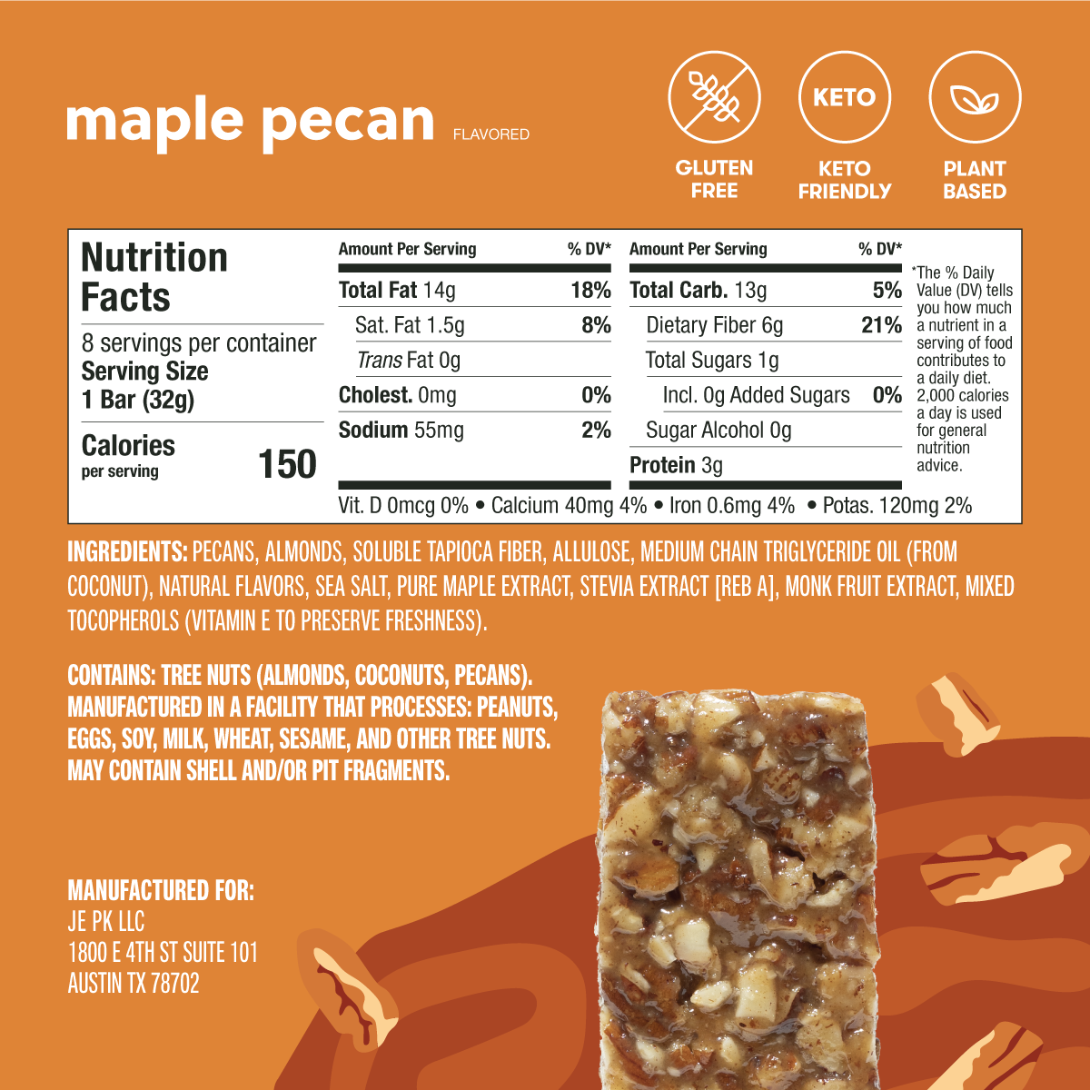 Barras de granola masticables, sin cereales y aptas para dieta keto, con el mismo sabor que las barritas de caramelo. Solo 1-3 g de carbohidratos netos por barra.